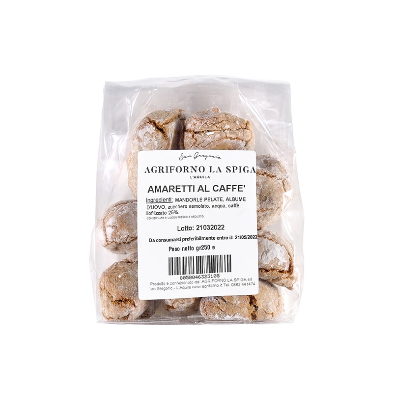 Mandorle pelate 40%, zucchero, albume d'uovo, mandorle amare 2.6%, acqua, caffè liofilizzato.
